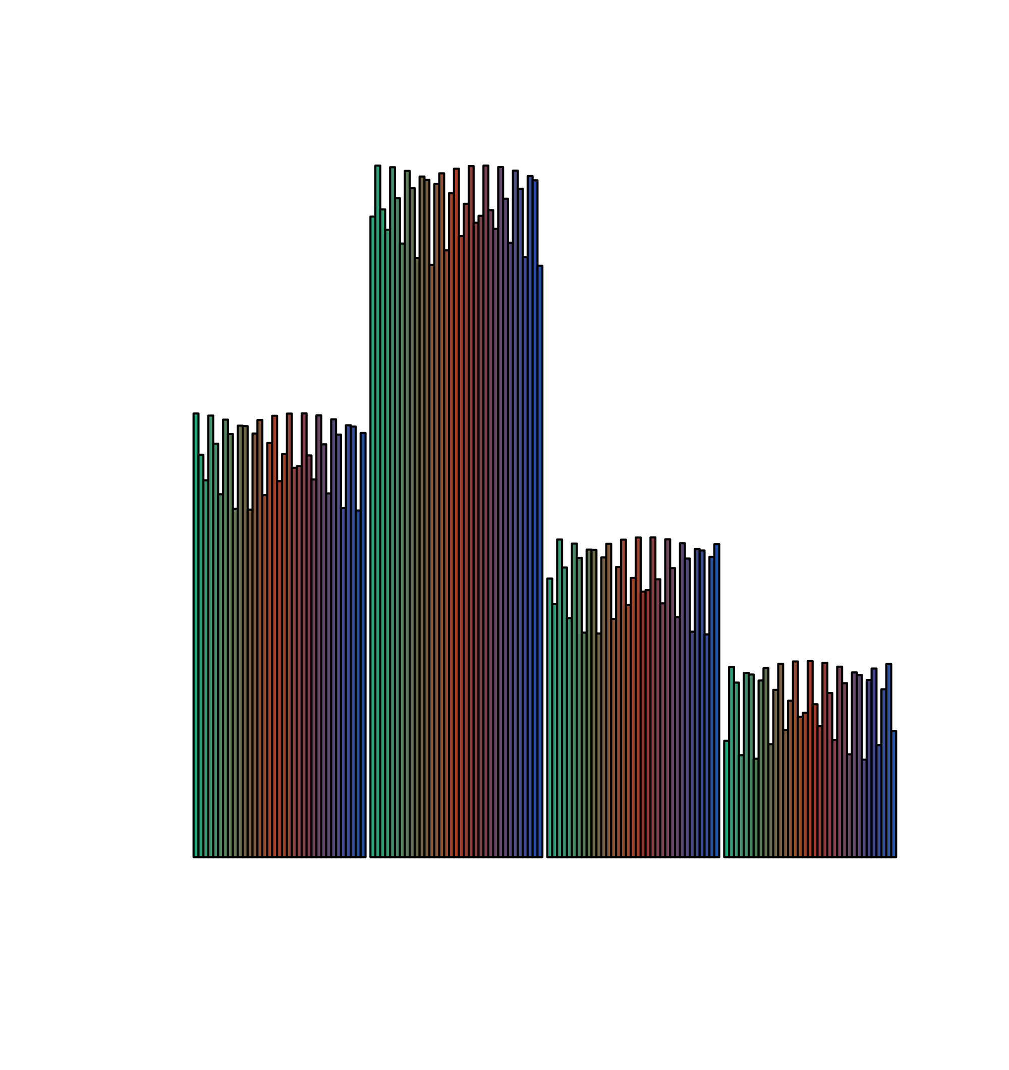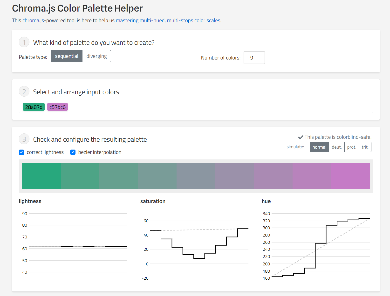 space = "HLS", the colors are transformed to HLS, the lightness component L is adjusted, and then the color is transformed back to a hexadecimal RGB string.If