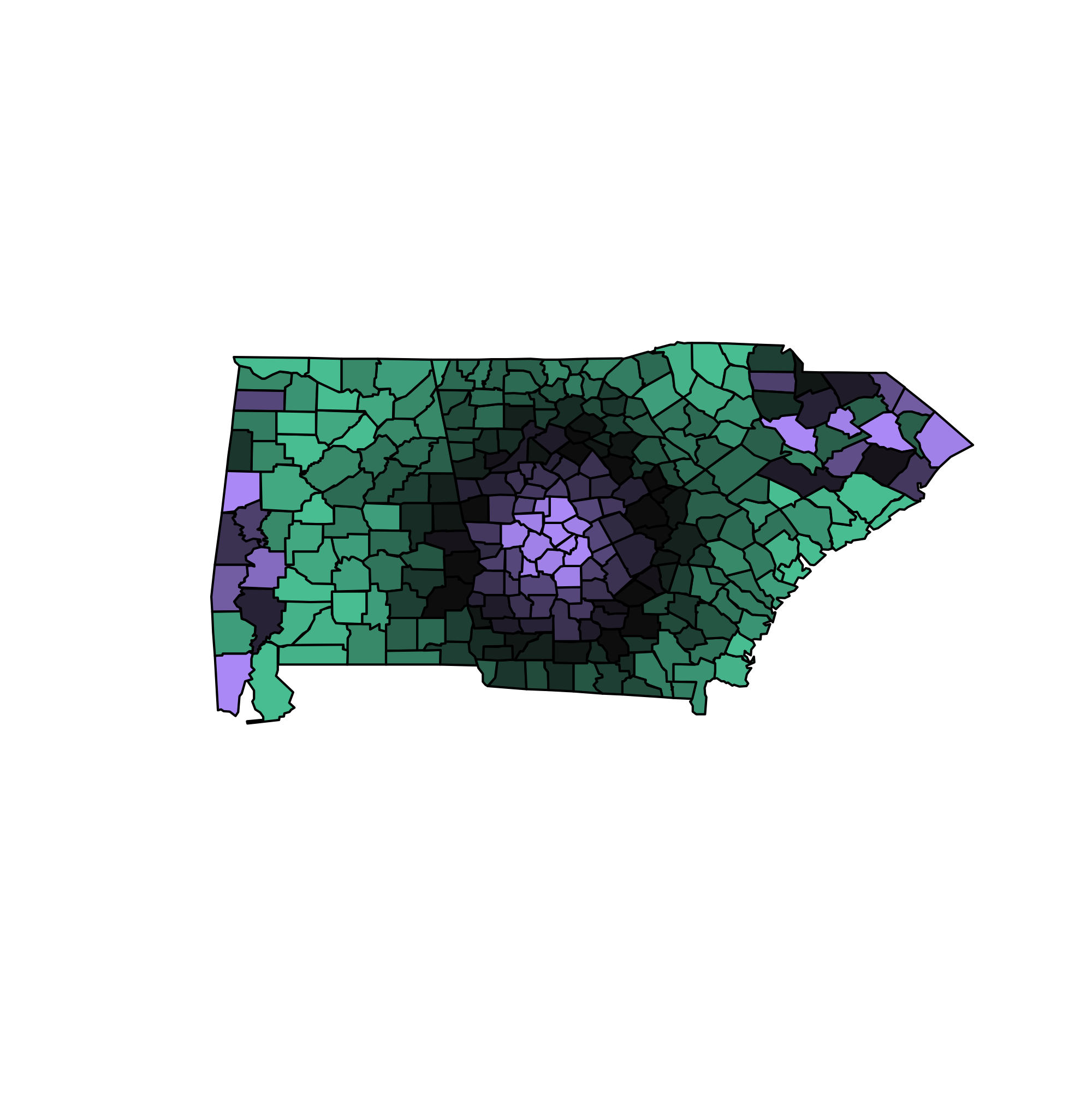 [1] "#28A87D" "#2EA379" "#349E75" "#3A9971" "#41946E" "#478F6A" "#4D8A66" "#548563" "#5A805F" "#607B5B" "#677658" "#6D7154" "#736C50" "#7A674D" "#806249"