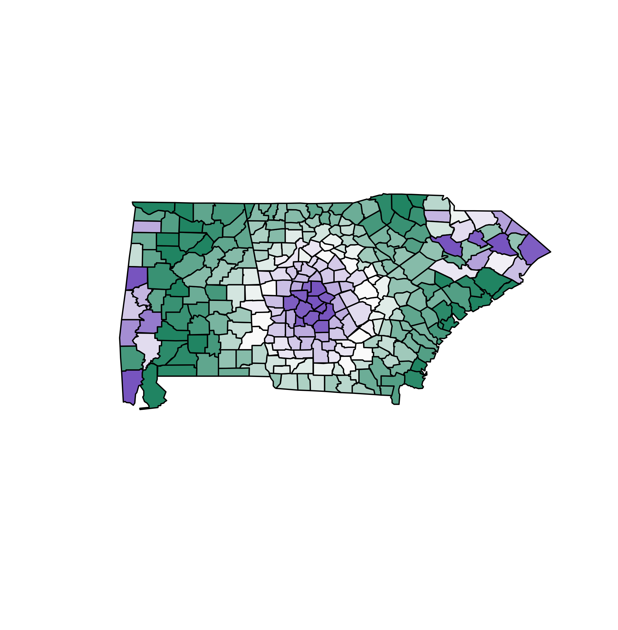 low = "#7754BF", mid = "grey90", high = "#208462", midpoint = 50,